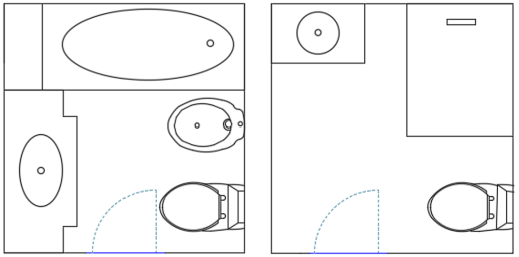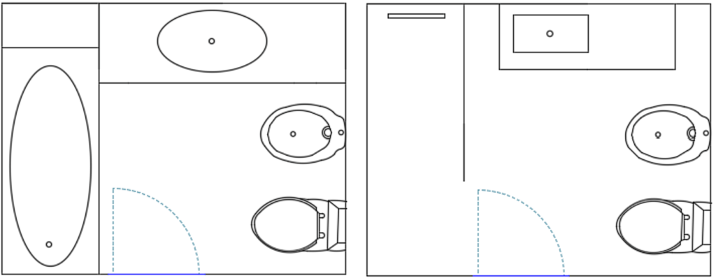 Só a sanita permaneceu no mesma localização conforme se pode verificar ela comparação dos dois layouts: