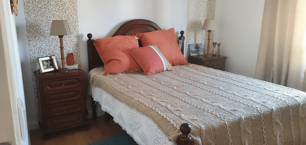 Ao serem adicionados estes elementos, acrescidos de um papel de parede e de alguns objetos pessoais, como molduras e ainda dois abajours, o espaço transformou-se num quarto acolhedor em que apetece estar!
