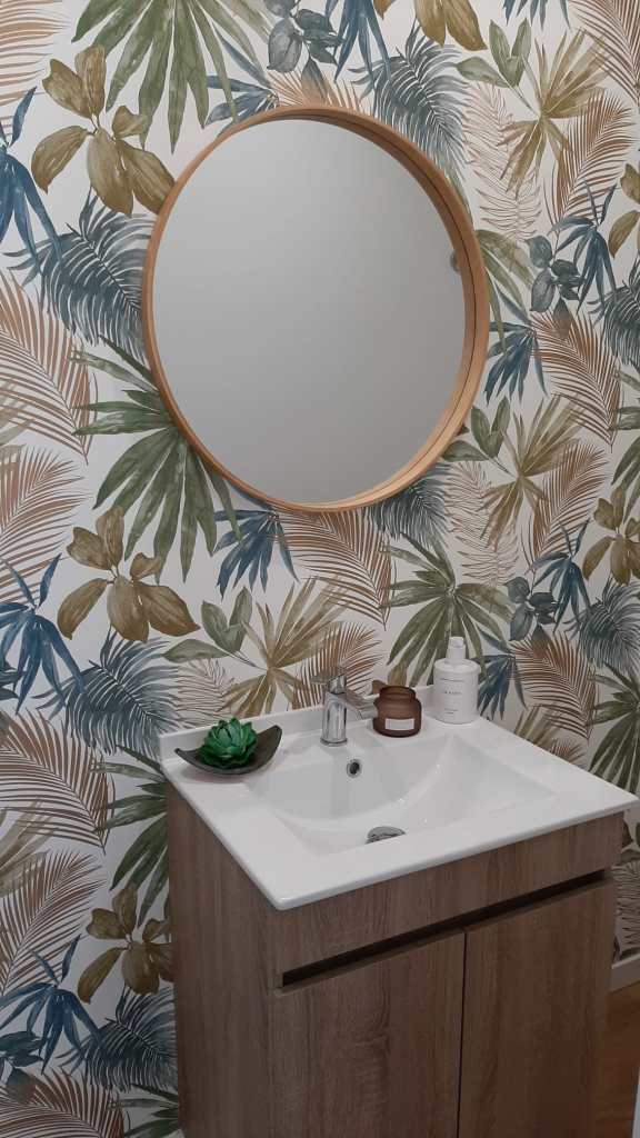 Ao ser adicionado esse elemento e a através da colocação de um papel de parede, o espaço ganhou uma nova vida transformando-se num espaço alegre e vibrante!