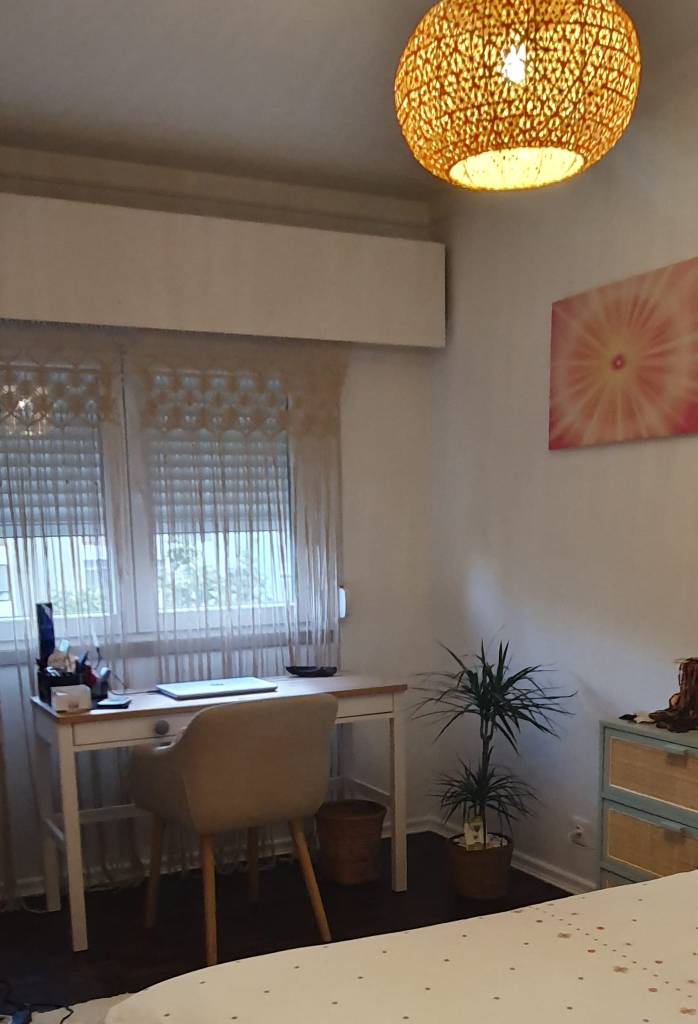 Neste próximo quarto, de cerca de 13m2 pretendia-se alterar o estilo, cores e conforto existentes mantendo-se a funcionalidade, nomeadamente no que respeita à possibilidade de manter uma área de trabalho.