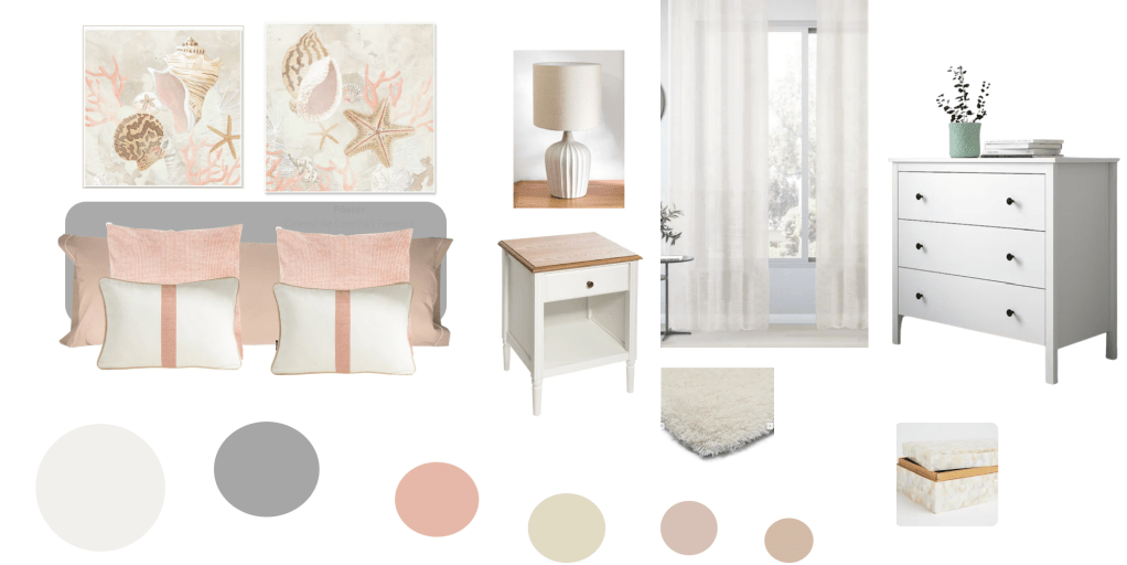 Face aos requisitos, à preferência pela cliente pelos tons rosa e proximidade do mar, escolheu-se o mar e a praia como conceito para o projeto.
