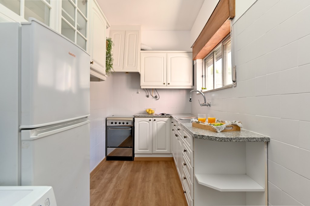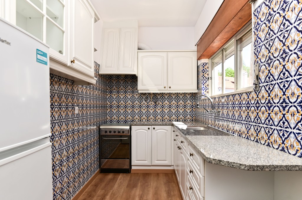 Os azulejos eram o ‘problema’ desta cozinha. ‘Camufla-los’ deu muito trabalho, mas valeu a pena!